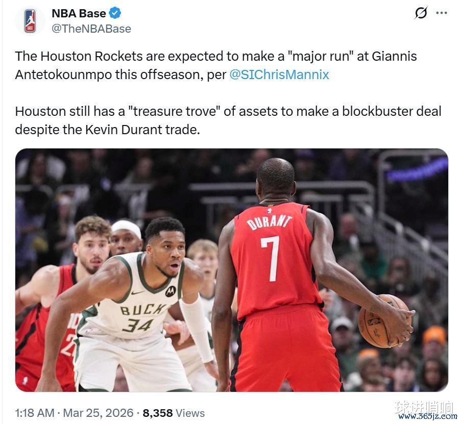 《体育画报》名记Chris Mannix跟进曝出,火箭队预计将在休赛期全力追求超级巨星字母哥。